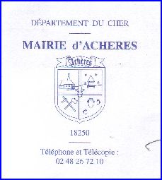 Écartelé: au 1er d'azur à la chapelle d'argent essorée de sable et terrassée de sinople, au 2e d'azur à la ruche d'argent, couverte d'or, terrassée de sinople et accompagnée de quatre abeilles d'argent en vol, au 3e d'azur à l'outil à fendre les merrains [de merrandier] et à la hache de bûcheron d'argent passés en sautoir, au 4e d'azur au pot de terre au naturel accompagné en chef senestre et et pointe dextre de de deux brocs du même; à la croix en filet de gueules brochant sur l'écartelé; à la fleur de lis d'or brochant en coeur sur le tout.