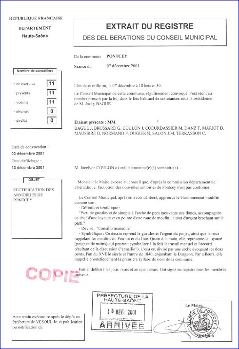 Extrait du registre des délibérations du 7 décembre 2001.
