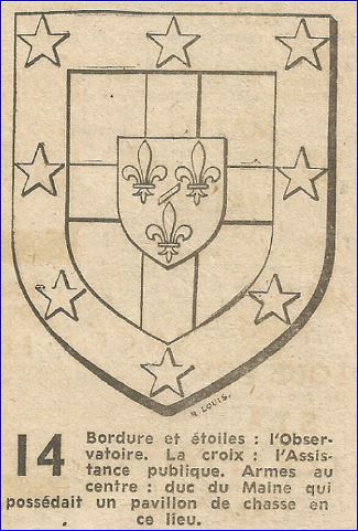D'argent à la croix de gueules; à la bordure d'azur chargée de huit étoiles d'argent; sur le tout d'azur à trois fleurs de lis d'or et au bâton péri en barre du même.