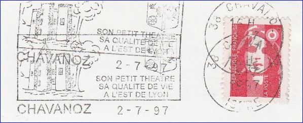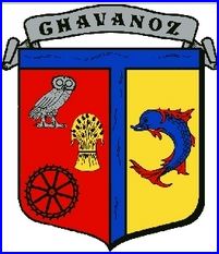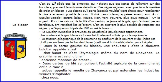 (1983) Parti: au 1er de gueules à la chouette contournée d'argent en chef dextre, à la gerbe de blé d'or en coeur à senestre, à la roue à aubes cousue de sable en pointe à dextre, au 2e d'or au dauphin d'azur, barbé, crêté, lorré, oreillé et peautré de gueules; au confluent du Rhône et de la Bourbre d'azur chargé d'ondes de sable, représenté par l'association d'un comble et d'une vergette déportée à senestre, brochant sur le tout.