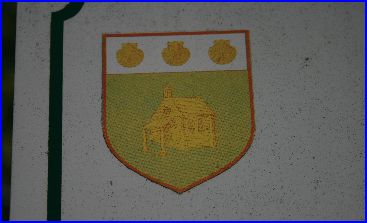 De sinople à la chapelle du lieu d'or; au chef d'argent chargé de trois coquilles d'or.