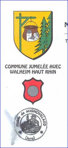 D'or à la potence de sinople à dextre, à laquelle est appendu un chaudron de tenné surchargé d'un bourg d'argent, à deux sapins de sinople mouvant du flanc senestre et brochant l'un sur l'autre.