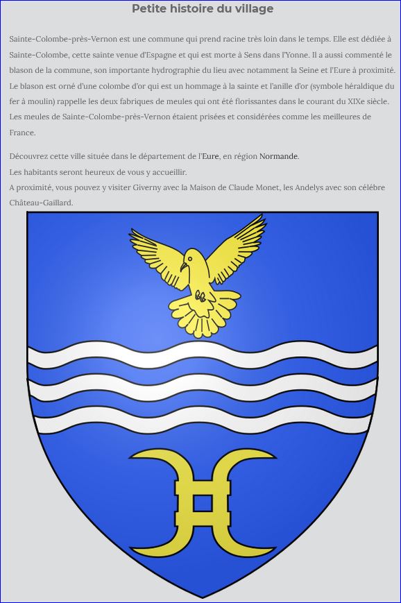Blason sur le site de l'ASL de Sainte-Colombe près Vernon, 2020.