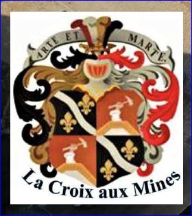 Coupé: au 1er d'or à la bande de gueules chargée de trois alérions d'argent, au 2e d'argent à deux pics de mineur de sable passés en sautoir.