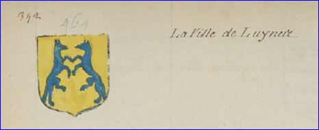 Écartelé: aux 1er et 4e d'or au lion de gueules, aux 2e et 3e d'azur à deux louves ravissantes et affrontées d'argent; sur le tout, de gueules à la massue d'or, armée de piquetons d'argent, posée en pal, au chef du même, chargé d'un gonfanon à deux pendants de gueules.