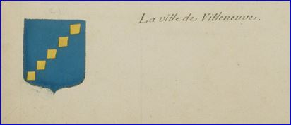 De gueules à la croix estrée, recroisetée et pommetée de douze pièces d'or, au chef cousu d'azur chargé de trois fleurs de lis d'or.
