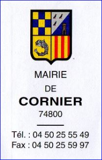 (1999) Écartelé: au 1er cinq points d'or équipollés à quatre points d'azur, au 2e taillé au I d'argent à trois corneilles contournées de sable, becquées et membrées de gueules, au II d'azur à la tour d'or, maçonnée de sable et ouverte du champ, au 3e d'or au dauphin d'argent, au 4e palé d'or et de gueules.
