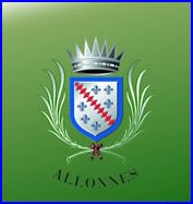 D'argent à la bande fuselée de gueules, accompagné de six fleurs de lis d'azur ordonnées en orle, à la bordure du même.