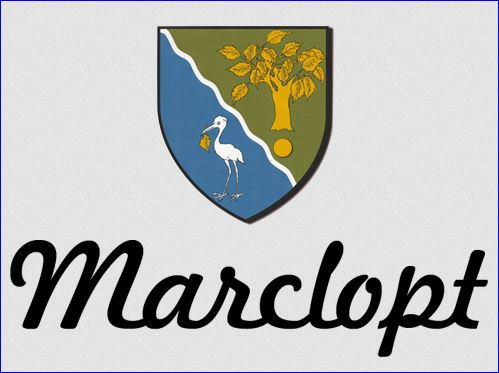 Tranché ondé de sinople à l'orme d'or soutenu d'un besant du même et d'azur à l'aigrette d'argent tenant dans son bec une feuille d'orme d'or; au filet en bande ondé d'argent brochant sur la partition.