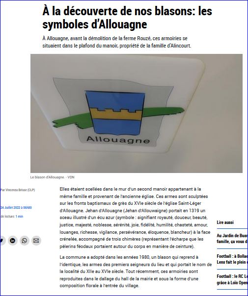 Article de presse La Voix du Nord du 24 juillet 2022 (site du journal).
