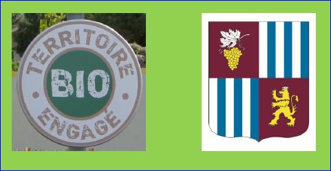 (2009) Écartelé: au 1er de pourpre à la grappe de raisin d'or tigée et feuillée de sinople, aux 2e et 3e palé d'argent et d'azur, au 4e de pourpre au lion couronné d'or et lampassé de gueules.