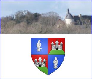 (1977) Écartelé: aux 1er et 4e d'azur au faucon perché d'argent regardant à dextre, aux 2e et 3e de gueules au château de trois tours couvertes et girouettées d'argent, ouvert et ajouré de sable et posé sur un tertre de sinople.