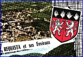 (1953) Parti: au 1er d'or au léopard lionné contourné de gueules, au 2e d'or au lion de gueules; le tout sommé d'un chef de sable chargé de quatre flammes d'or.