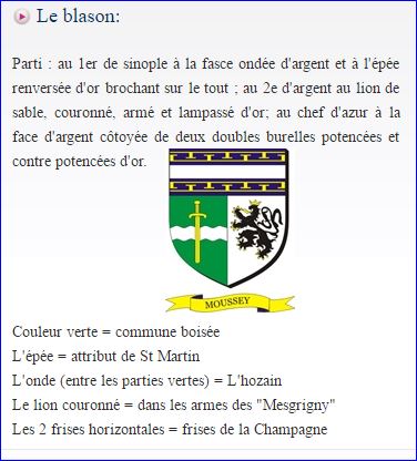 (2009) Parti: au 1er de sinople à la fasce ondée d'argent et à l'épée renversée d'or brochant sur le tout; au 2e d'argent au lion de sable, couronné, armé et lampassé d'or; au chef d'azur à la face d'argent côtoyée de deux doubles burelles potencées et contre potencées d'or.