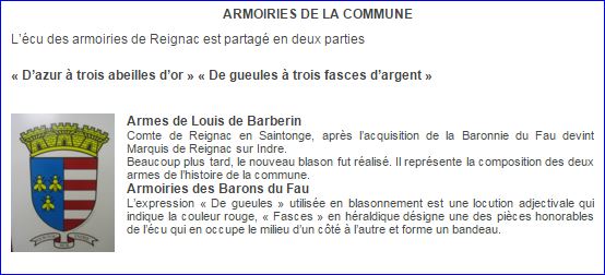 - celui de la famille De Barberin, marquis de Reignac en 1710 (trois abeilles),