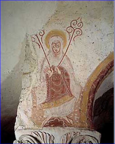 Peinture de sainte dans la crypte (XIIe siècle) de l'église.