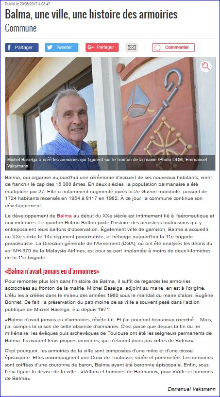 Article de presse La Dépêche du 20 mai 2017, (site du journal).
