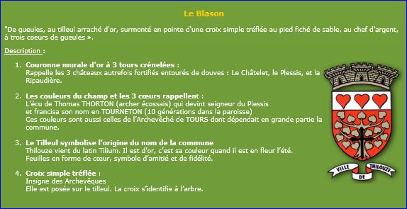 (1986) De gueules au tilleul arraché d'or, chargé d'une croix tréflée au pied fiché de sable; au chef d'argent chargé de trois coeurs de gueules.