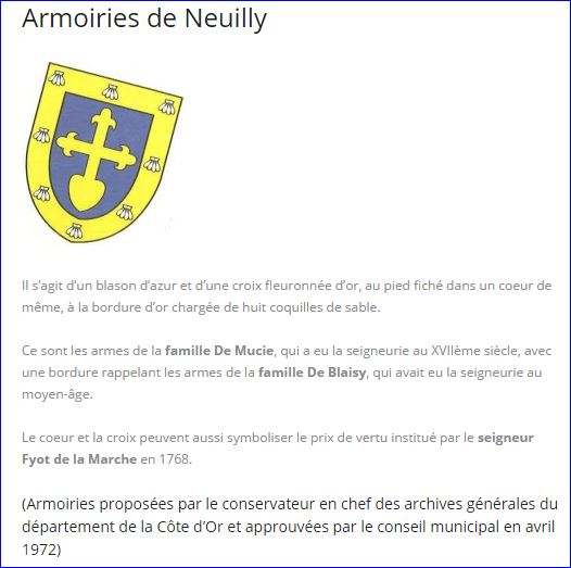 (1972) D'azur à la croix fleuronnée, le pied fiché dans un coeur, le tout d'or; à la bordure du même chargée de huit coquilles de sable.