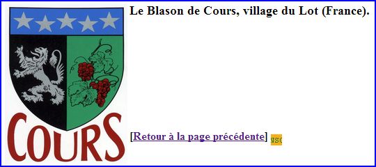 Parti: au 1er de sable au lion d'argent, au 2e de sinople au pampre feuillé, vrillé du champ et fruité de deux pièces de gueules; le tout sommé d'un chef d'azur chargé de cinq étoiles d'or posées 3 et 2.