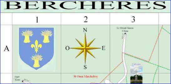 D'azur à trois gerbes de blé d'or accompagnée d'une fleur de lis du même en abîme.