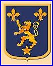 D'azur au lion d'or accompagné de deux fleurs de lis en chef et d'une étoile en pointe, le tout du même; à la filière d'or.