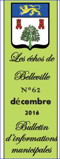 Bulletin municipal Les échos de Belleville No 62, décembre 2016.