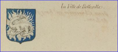 D'azur à la salamandre d'argent (d'or), la tête contournée, sur sa patience de gueules.
