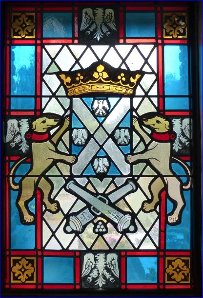 (1986) D'azur au sautoir d'argent cantonné de quatre aiglettes du même.