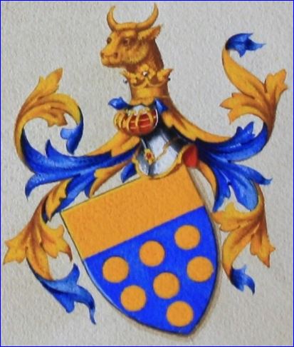 D'azur à sept besants d'or ordonnés 3, 3 et 1; au chef d'or.