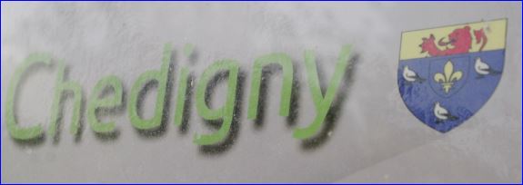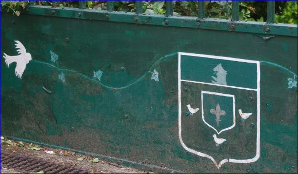D'azur à trois colombes d'argent accompagnées en coeur d'un écusson d'azur chargé d'une fleur de lis d'or; au chef de même chargé d'un lion issant de gueules.