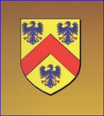 D'or au chevron de gueules accompagné de trois aigles d'azur, becquées, languées et membrées de gueules.