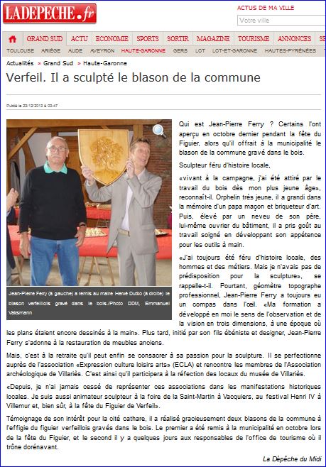 Article de presse La Dépêche du Midi, 23 décembre 2013.