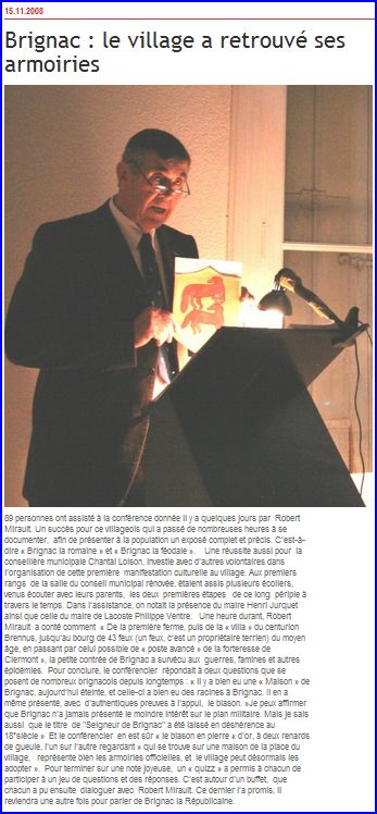 Article du "Midi Libre" du 15/11/2008, sur le site du journal. (Extrait)