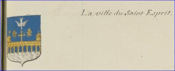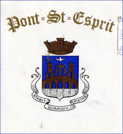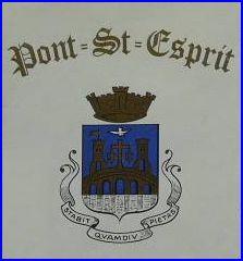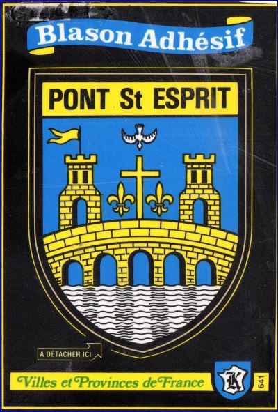 D'azur au pont de cinq arches d'or sur des ondes d'argent mouvant de la pointe, sommé d'une croisette haussée au milieu du pont et de deux petits bâtiments, celui de dextre avec une girouette, le tout d'or, la croisette accostée de deux fleurs de lis du même et surmontée d'une colombe du Saint-Esprit d'argent.