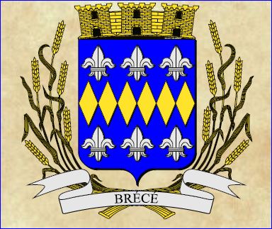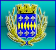 (1999) D'azur à la fasce fuselée de six pièces d'or accompagnée de six fleurs de lis d'argent, trois rangées en chef et trois rangées en pointe.