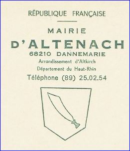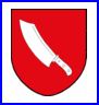 De gueules au tranchoir d'argent posé en bande, le manche en bas.