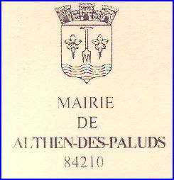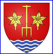 (1980) De gueules à la bêche à garance d'or, accostée de deux fleurs de garance du même; à la champagne ondée d'argent et d'azur.