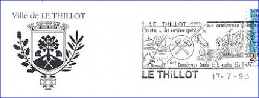 (1993) D'argent au tilleul de sinople sur un mont de gueules chargé d'une masse et d'un marteau de mineur en sautoir d'argent le tout accosté de deux bonnets phrygiens affrontés de gueules chargés d'une cocarde d'argent et d'azur.