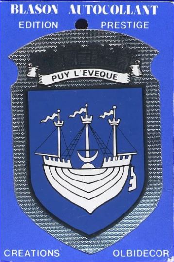 (1956) D'azur à la nef des nautoniers du Lot à trois mâts d'argent.