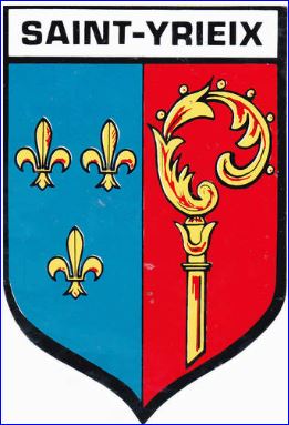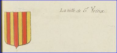 (1892) Parti: au 1er d'azur à trois fleurs de lis d'or, au 2e de gueules à la crosse contournée d'or.
