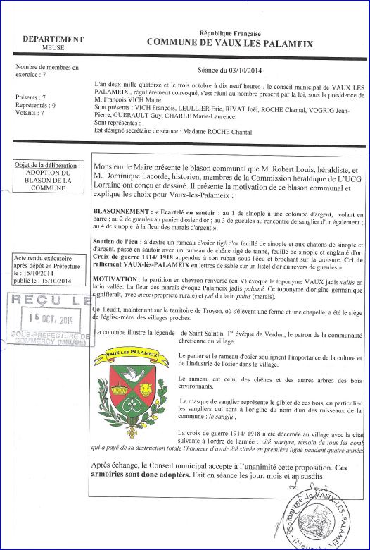 Extrait du Registre des Délibérations du 3 octobre 2014.