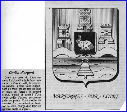 Coupé ondé: au 1er e gueules à trois tours mal ordonnées d'or, maçonnées de sable, ouvertes et ajourées du champ, au 2e d'azur sommé d'une divise ondée d'argent et chargé d'une cloche d'or; sur le tout, de sable au lapin arrêté d'argent.