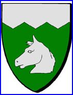 (1977) De sinople à la tête de cheval coupée d'argent; au chef denché de trois pièces du même.