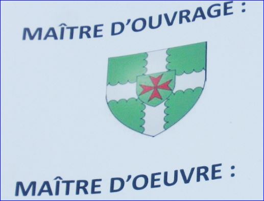 Blason sur un panneau de chantier communal.