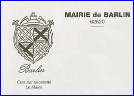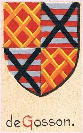 (1984) Écartelé: aux 1er et 4e de gueules à la frette d'or, aux 2e et 3e fascé d'argent et de gueules de huit pièces au sautoir de sable brochant sur le tout.