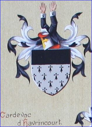 D'hermine au chef de sable chargé de quatre billettes d'argent.