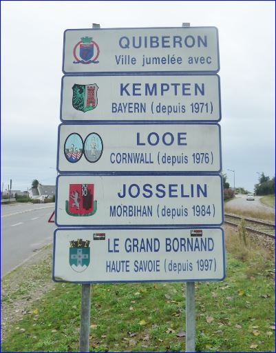 Panneau d'entrée de ville de Quiberon (avec des émaux erronés).