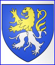 D'azur au lion coupé d'or et d'argent.