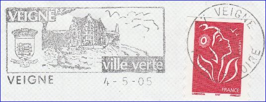 (1979) De gueules à la roue de moulin d'or, dessinée en perspective cavalière à huit rais et aubes, posée sur une rivière ondée et cousue d'azur, mouvant de la pointe.